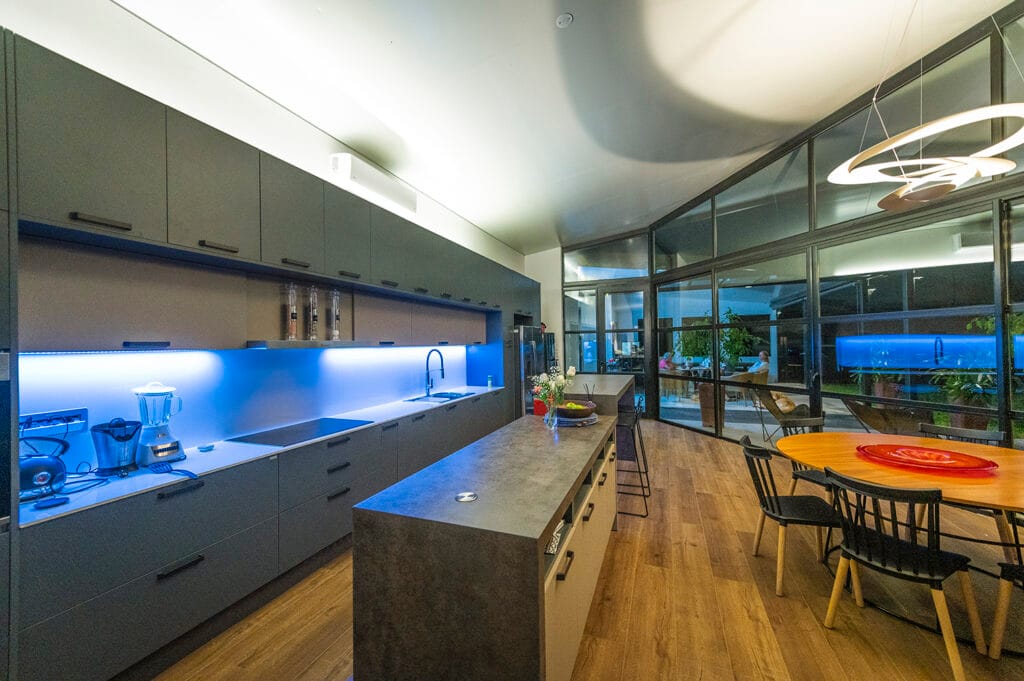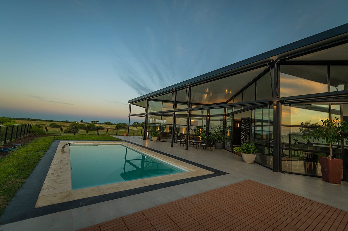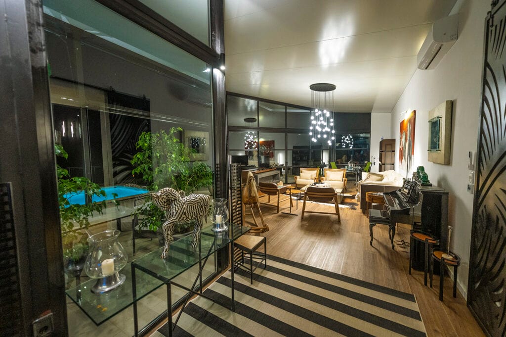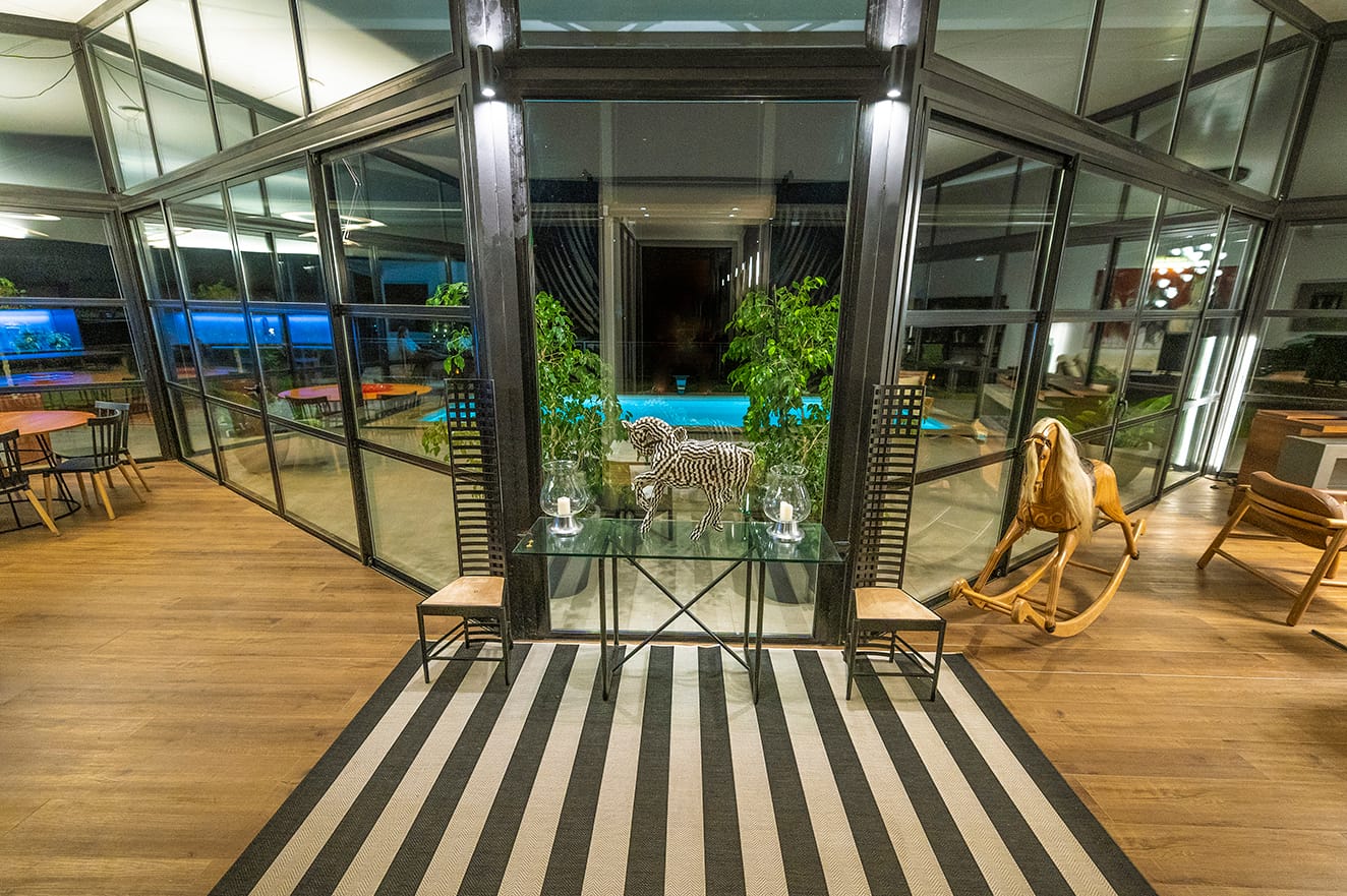 «La idea del generar espacios abiertos y plenamente integrados al paisaje se convirtió en una meta que nos permitió desarrollar un proyecto que fuera más allá de lo habitual. Se trataba, además, de proyectar para construir con sistemas más económicos y sustancialmente amigables con el ambiente. Jugamos con el formato del bow Windows y allí encontramos una respuesta natural a la necesidad de generar una interacción bien estrecha entre el paisaje natural y el espacio interior. Los muros tradicionales los sustituimos por un zigzag de ventanales que nos permiten generar ventilaciones cruzadas y a la vez atrapan la luz de forma tridimensional, lo que significó que atrapáramos al espacio de una manera distinta y generar una atmósfera definitivamente particular.»