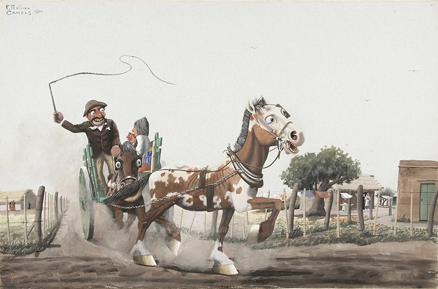 Y en estos días una treintena de obras de este gran artista plástico, que entre 1931 y 1945 se reprodujeron en los recordados almanaques de la empresa Alpargatas, llegaron desde la vecina orilla a Uruguay, gracias a una iniciativa que de inmediato contó con dos importantes apoyos: Por un lado, el del Ministerio de Educación y Cultura de Uruguay y su Dirección Nacional, que coorganizó la muestra y en el marco de la política de descentralización que viene impulsando el ministerio, posibilitó que la misma se inaugurara primero en el interior del país, teniendo por sede el Museo de Artes Visuales E. Alexander de Florida, para llegar luego a Montevideo, donde permanecerá hasta el 2 de julio del año en curso en el Museo Zorrilla. Por otro lado, por la inmediata respuesta que brindó el Museo Las Lilas de Areco (San Antonio de Areco- Argentina), de la Fundación Las Lilas, y titular de las obras originales del popular artista, que generosamente cedió temporalmente las mismas y también colaboró para hacer posible su presencia en territorio uruguayo. Dos fundamentales apoyos, a los que se sumaron colaboraciones del Ministerio de Turismo de Uruguay, de la Embajada de Uruguay en Argentina, de la Embajada de Argentina en Uruguay, y de la Intendencia de Florida, a través de sus Direcciones de Turismo y de Cultura.