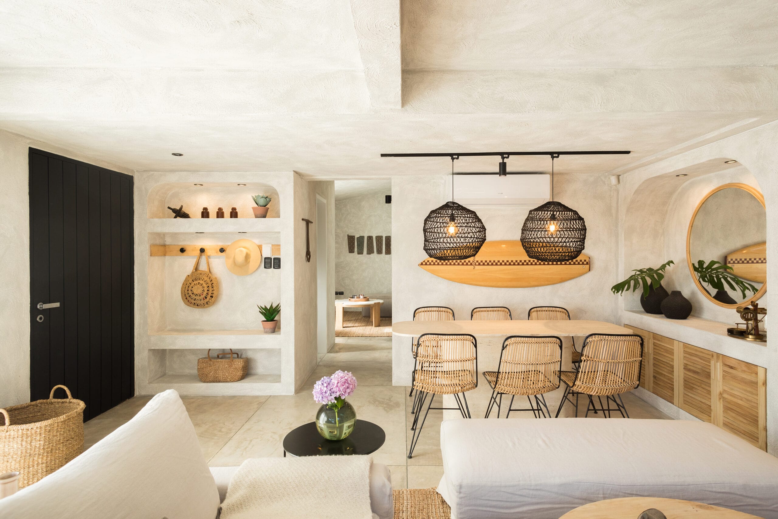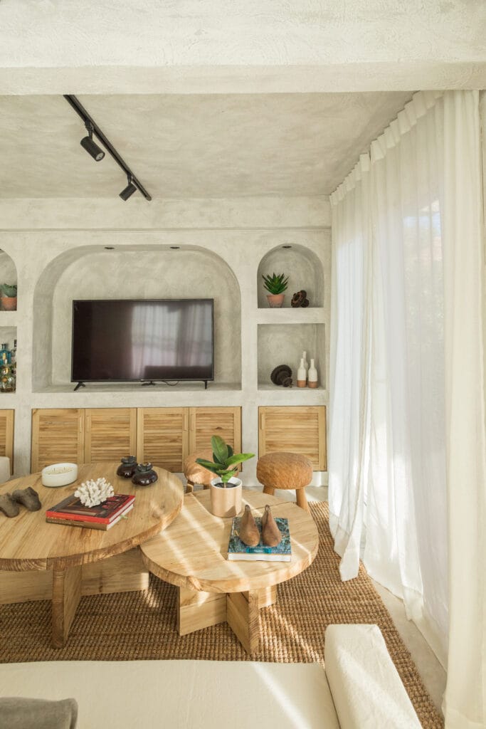 Los habitantes, luego de descubrir este fantástico lugar, contrataron a None Fossati para intervenir en la casa y dotarla del confort y las comodidades necesarias para que fuera posible habitarla a lo largo de todo el año. En esta etapa la conocida diseñadora desarrollo un proyecto de interiorismo pleno, que se ocupó del cuarto de estar comedor, el estar diario, la cocina y los tres dormitorios, tarea que demandó que se interviniera en la distribución de la planta, generando un nuevo concepto.