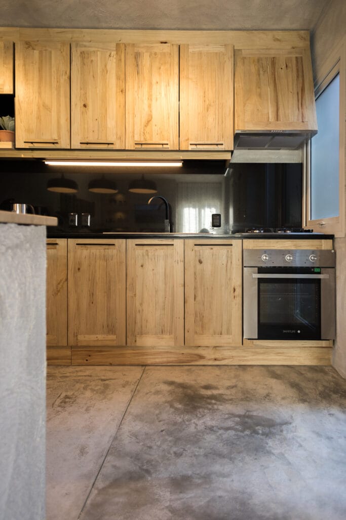 «… lo primero que resolvimos fue cambiar la distribución de la cocina, a la que entendimos era necesario comunicar directamente con el estar diario, de modo tal de generar una vida distinta para el espacio y además integrarlo a través de la estufa a leña, los hogares resultan integradores y en este caso además muy interesantes para, por ejemplo, el invierno. A la vez, desde la cocina ahora se puede acceder directamente a las dependencias de servicio que cuentan con dormitorio y lavadero. Luego la necesidad de actualizar las condiciones de habitabilidad de la casa nos encontramos con la necesidad de profundizar la intervención en la distribución, así, donde se ubicaba el cuarto de estar generamos un gran espacio para integrar también un buen comedor, la habitación donde dormían los chicos creció, casi duplicó su área. «