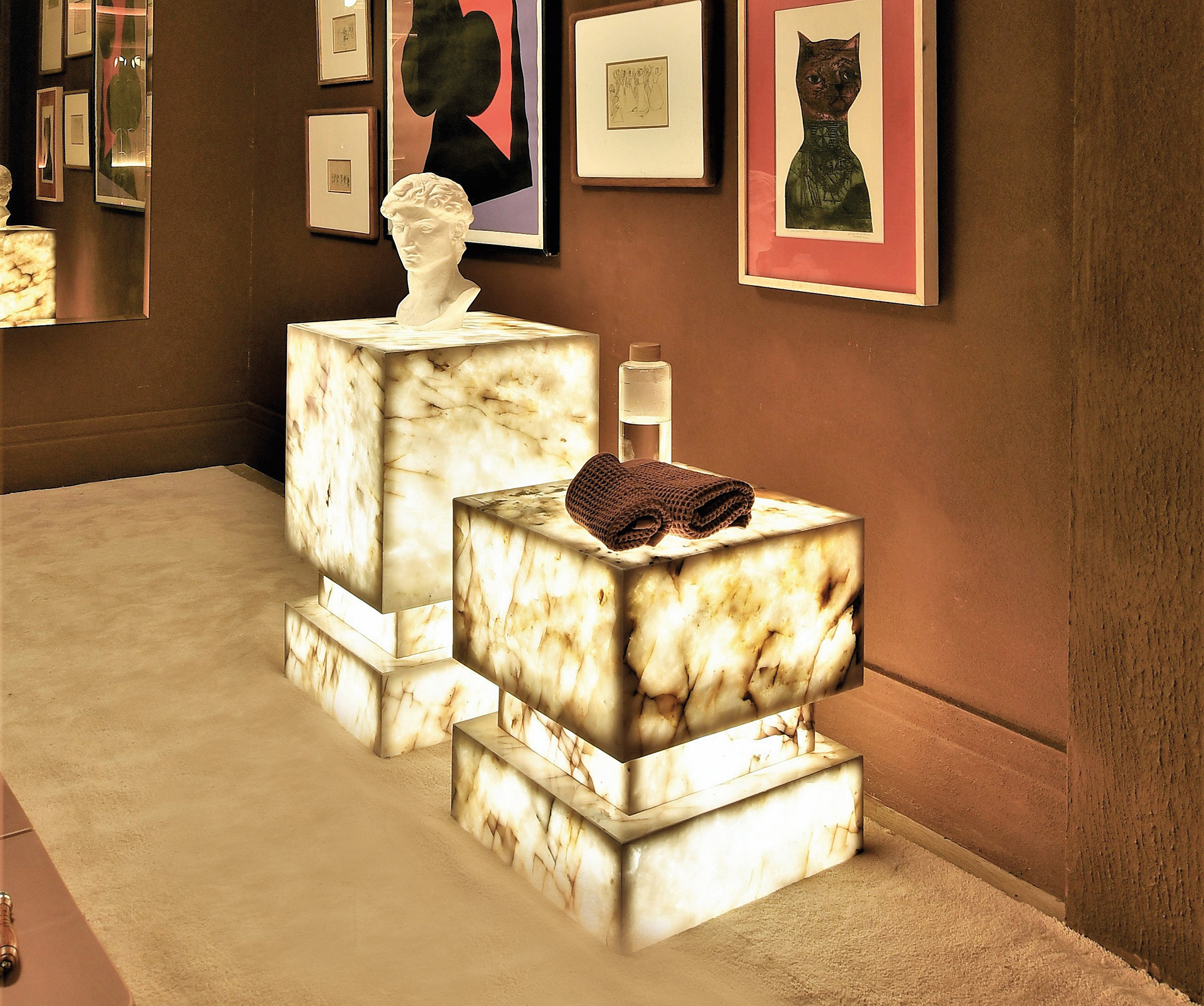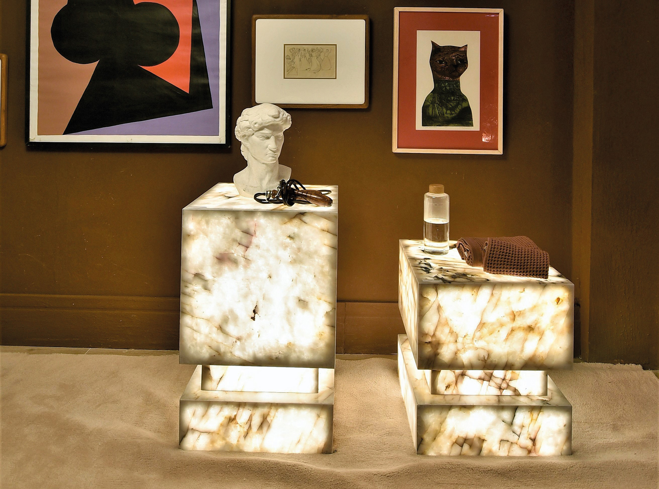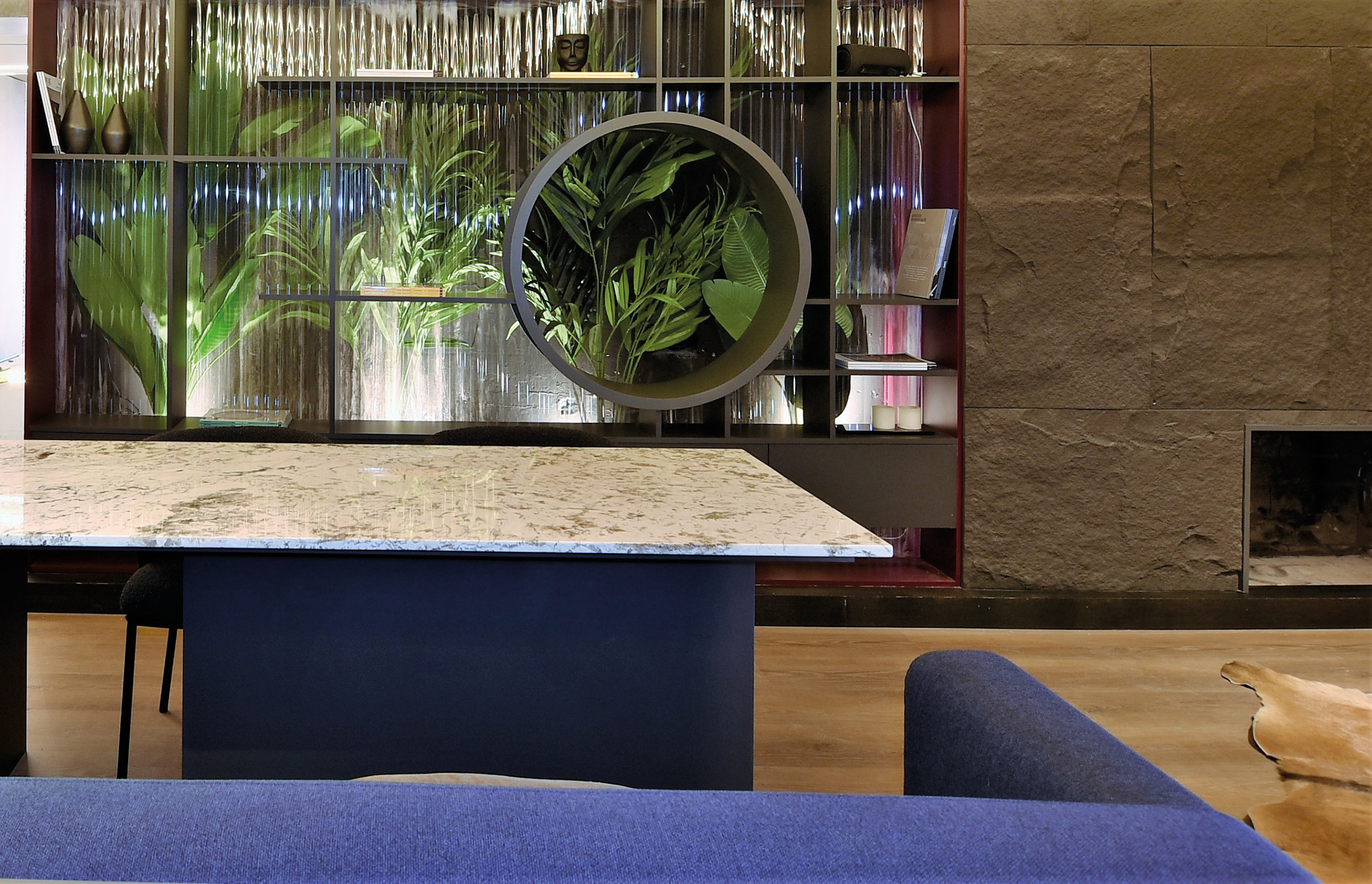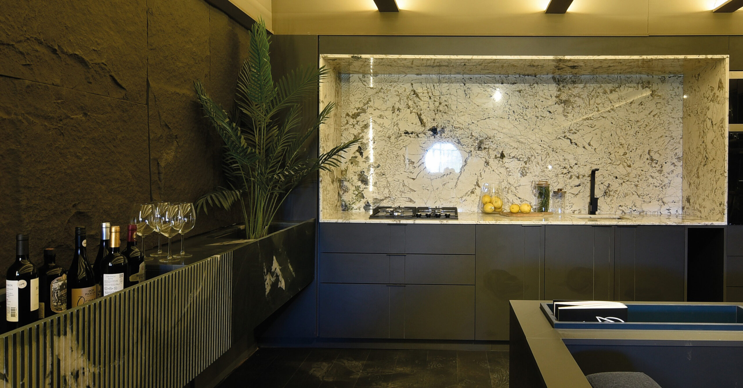 Junto a ellos, las piedras translúcidas continúan su ascenso casi teatral. El Krystallus, por ejemplo, se ha convertido en el cómplice perfecto de los espacios donde la luz es arquitectura pura. Retroiluminadas, estas piedras se comportan como si tuvieran una vida interior: brillan, respiran, cambian de humor. Son esculturas de luz más que simples revestimientos; objetos que dotan a los ambientes de una aura casi ritual.
