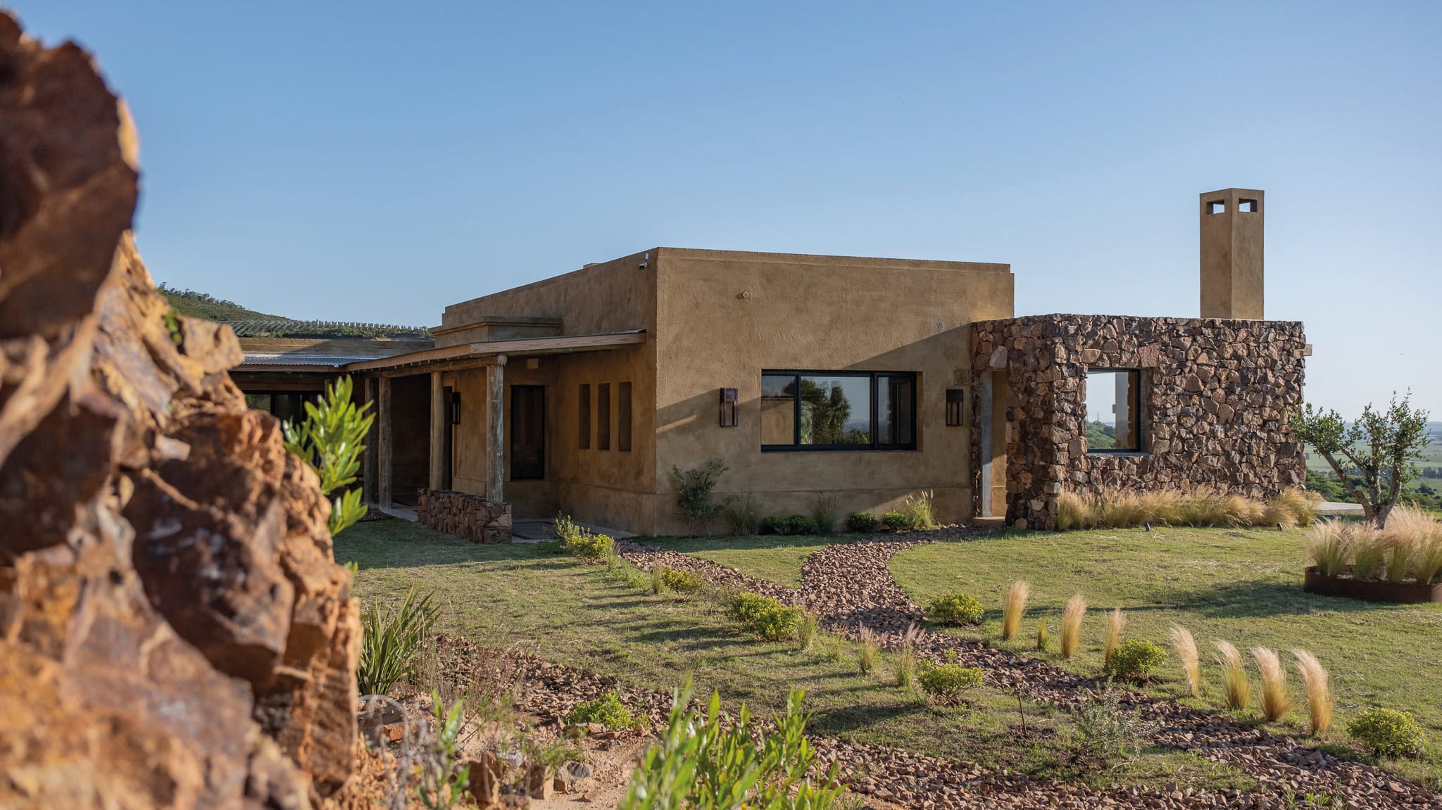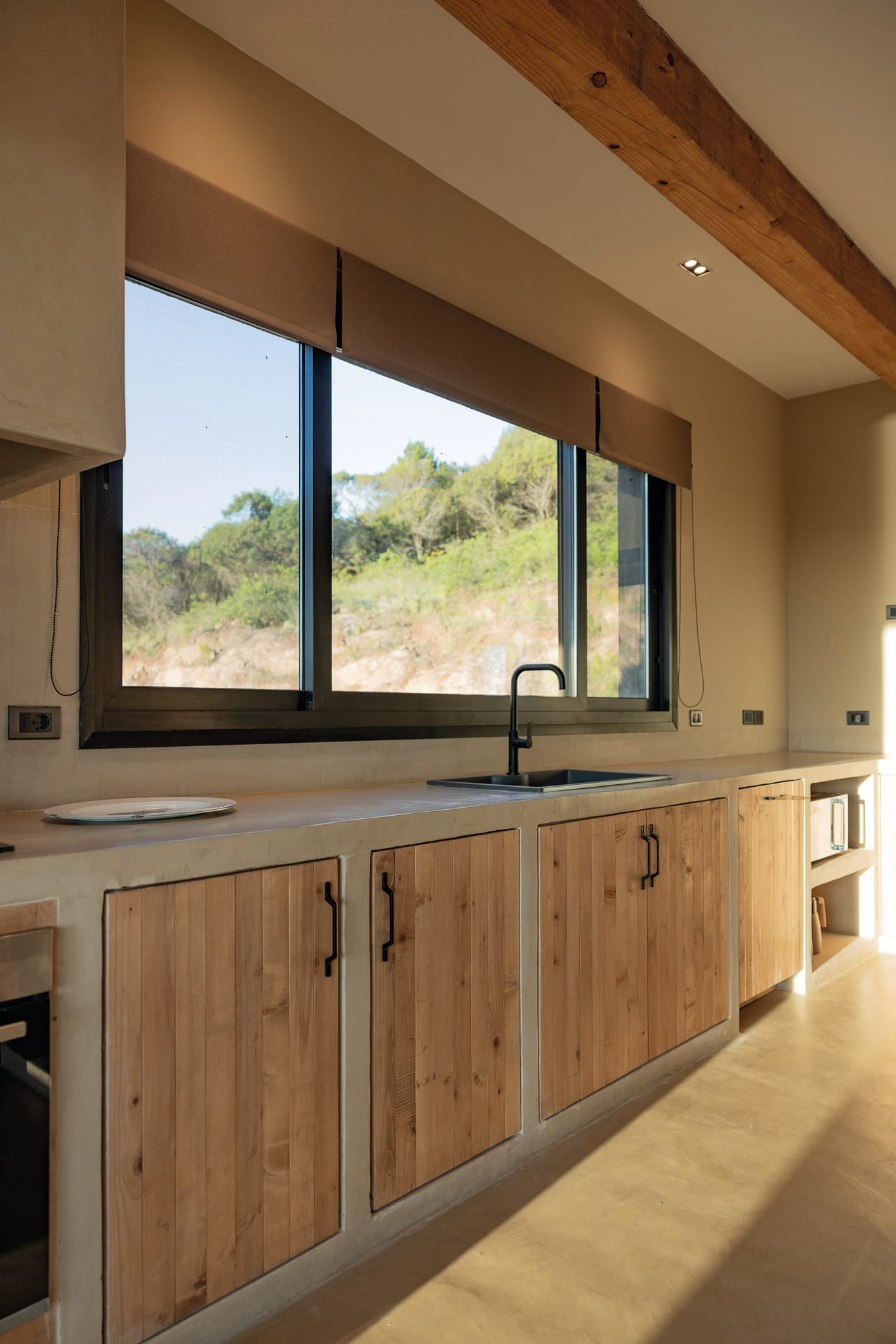Ubicada en las Sierras de Lavalleja, esta casa se presenta como una extensión natural del mítico paisaje serrano. Estratégicamente situada en una elevada meseta que se logra divisar luego de intensa búsqueda para la implantación de la misma, la casa se integra con audacia a las ondulantes sierras, aprovechando las vistas panorámicas que ofrece la altitud. Su diseño, desarrollado en una única planta bien distribuida, sigue una trama constructiva tradicional con materiales tradicionales y nobles.