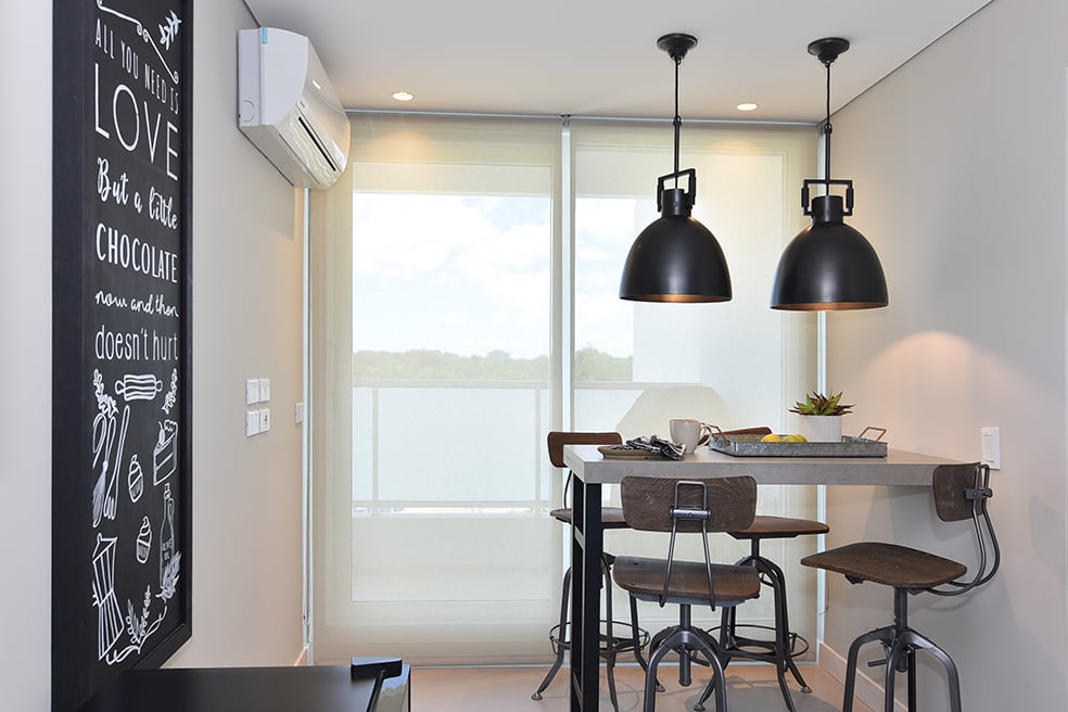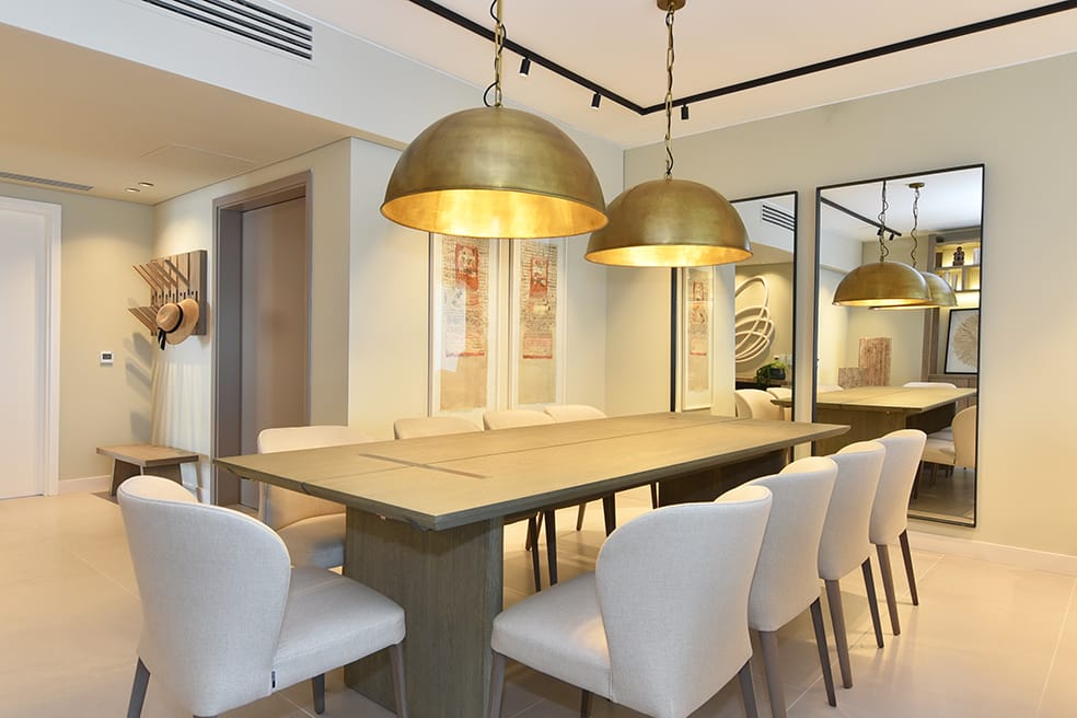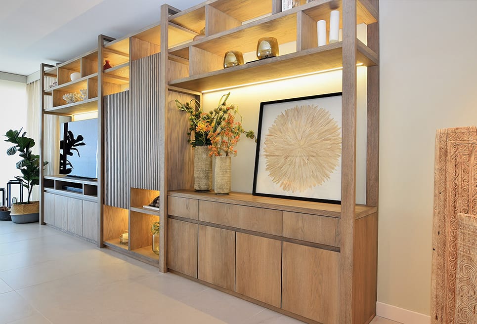 Al ingresar, nos encontramos un gran espacio central que libera y purifica la planta y divide los espacios de uso común con las áreas privadas, rápidamente hacemos cuenta de cada uno de los detalles en cuanto al diseño que absorbe la propuesta; estilo contemporáneo que se define a través de la selección de colores puros en el revestimiento de los pisos y la contención de igual forma en el cielorraso optando por tonalidades neutras en las paredes que concilian con las distintas texturas y colores que propone el mobiliario. En esa sintonía, el acceso al apartamento se muestra con un recibidor que ejerce de articulador en la distribución de ambientes.