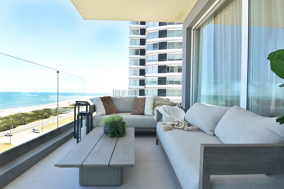 Se trata de un apartamento en el nuevo edificio Le Parc III construido por el arquitecto Mario Roberto Álvarez en Punta de Este. Este proyecto concreta las grandes posibilidades que ofrece la espacialidad en cuanto a las generosas proporciones y su orientación al Norte con las vistas al Océano. El apartamento se desarrolla de forma armoniosa en cuanto a su distribución con eje central en el living y la terraza con sus inmejorables vistas y el siempre tan necesitado vinculo interior-exterior.