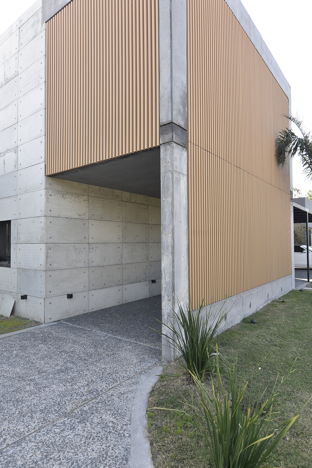 Visitamos una obra reciente, ubicada en la urbanización CARMEL, sobre Camino de los Horneros, donde la aplicación de distintos productos WPC exhiben el enorme valor agregado que supone tanto en términos de diseño como de habitabilidad y mantenimiento. La casa está orientada en sentido inverso, esto es la fachada principal niega al interior y contiene las dependencias de servicio, la casa se abre entonces hacia el lago, capturando las mejores vistas y la mejor orientación. Los proyectistas apelaron al sistema de alfajías que les permitieron generar celosías permeables que atienden y son el mejor partido debido a la orientación solar y la ventilación. El proyecto procuraba evitar volúmenes cerrados y sólidos con lo cual el sistema de alfajías en WPC generó la solución de una propuesta que funciona tanto en lo vertical como en la horizontalidad.
